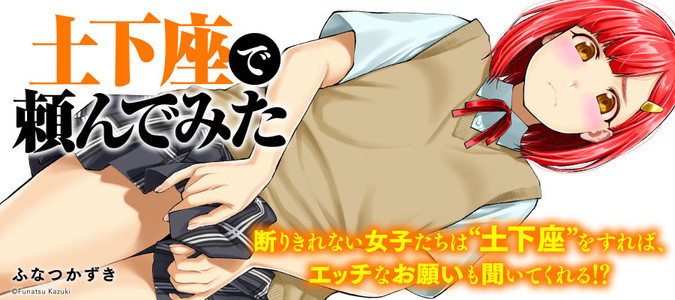 あの「土下座で頼んでみた」が「もっと土下座で頼んでみた」となって、さらにパワーアップして帰ってきた!! さまざまな断りきれない女子たちは土下座をすれば、エッチなお願いも聞いてくれる!?「土下座で頼んでみた」「土下座で頼んでみた 職業編」コミックスが好評発売中! 女の子たちの胸や下着が見られるお楽しみページはすべてフルカラーで掲載!!