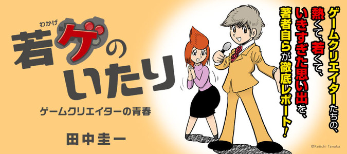 1980〜1990年代、ゲーム業界は「青春期」だった。そんな時代に大奮闘したゲームクリエイターたちの、熱くて、若くて、いきすぎた思い出をたずねたい──そんな想いから企画されたレポートマンガ、それが『若ゲのいたり〜ゲームクリエイターの青春〜』です。 近著『うつヌケ』、『ペンと箸』に続くレポートマンガ第3弾として本作を手掛けるのは、自身がゲーム業界で働いていたという経歴を持つマンガ家・田中圭一先生! “キレイな田中先生”の作品をぜひご堪能ください。