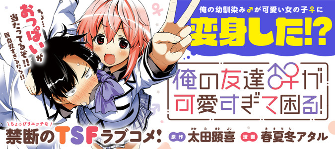 アイツ(男友達)が女体化したら「理想の彼女」だった!!?子供のころに住んでいた街に10年ぶりに戻ってきた天野滉一は、転校初日に幼馴染みの沢渡雪緒と再会の喜びを分かち合うも突然雪緒が女体化してしまい戸惑いを隠せない。雪緒は「突発性異性体変成症」という10万人にひとりの奇病で突然女の子になってしまう体質だった――!女体化した幼馴染み♂が可愛くてドギマギ!? 禁断のTSF(性転換)ラブコメ!待望のコミックス1巻、9月27日(金)発売!
