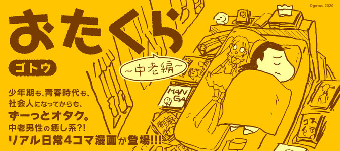 少年期も、青春時代も、社会人になってからも、ずーっとオタク。オタクという言葉が生まれて幾星霜。オタクとはなんなのか。自認や他者評価の変遷あれど、好きなものは好きという姿勢と生き様に変わりなし。今日もオタクは、大好きなものを味わって、大好きと叫んでいます。オタクという言葉がなかった時代からオタクのゴトウが送る、中老男性のリアル日常4コマ漫画。