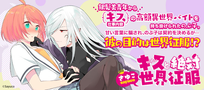 多額の借金を抱える女子高生・のぶ子。ガッツリ儲かるバイトを探していたある日、街中で銀髪の美青年に出会う。見惚れていると突然――ハグされ、キスされ、異世界に連れてかれ!?のぶ子とのキスで“力”が満ちるという彼に、【仕事内容:キス】の高額異世界バイトを持ち掛けられる。甘い言葉に騙され、のぶ子は契約を決めるが…彼の目的は世界征服!?