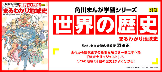 角川まんが学習シリーズ『世界の歴史』から初めての別巻が登場! 古代から現代までの重要な項目を一気に学べる「地域史ダイジェスト」で、5つの地域の「縦の歴史」がよく分かります。本書とセットで「横の歴史」が語られる角川まんが学習シリーズ『世界の歴史』全20巻を読むと、世界史の理解が格段に深まります。これこそが、最先端の歴史理解の方法「グローバル・ヒストリー」です。さらに2022年の世界情勢までを網羅した最新版!