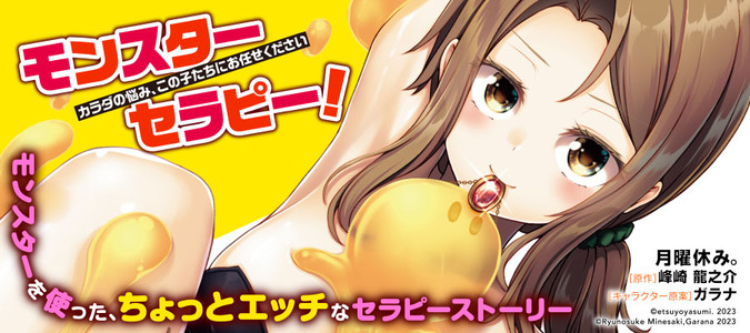 かつて軍属のモンスター使いだったアレスは、とある事情から戦いを捨て、弱小モンスターとばかり契約するモンスターテイマーとしてぐだぐだした日々を送っている。ある日、食い扶持を探しているアレスが思い出したのは、王都に伝わる民間療法“モンスターセラピー”。さっそくスライムを使った洗体とマッサージを施術してみると、セラピー効果と同時に、相手を発情させてしまう作用があった――。