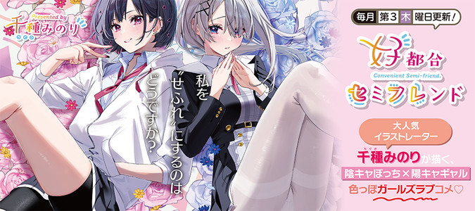 コミュ症ド陰キャ高校生・珠海(すうな)は今日から寮生活。 緊張しつつ部屋へ入ると、そこには… 女の子とイチャつくルームメイト・輝子(ルカ)の姿が! 人肌恋しいので“せふれ”がいないと困るというルカに 部屋に他人を連れ込んでほしくないすうなは 勢いで『セ(ミ)フレ(ンド)契約』を持ちかけて…? コミックス1〜3巻大大大好評発売中!!!!