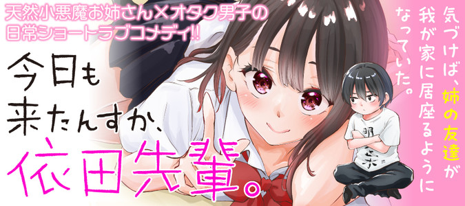 俺の実家で、我が家のようにくつろぐこの女。同じ高校の先輩で、姉の友達の依田燈。学校まで片道2時間らしく、ほぼ毎日俺の家に居座っている。無防備で少し抜けてる依田先輩に振り回されて、ドキドキしっぱなし!!ひとつ屋根の下で巻き起こる、天然小悪魔お姉さん×オタク男子の日常ショートラブコメデイ!