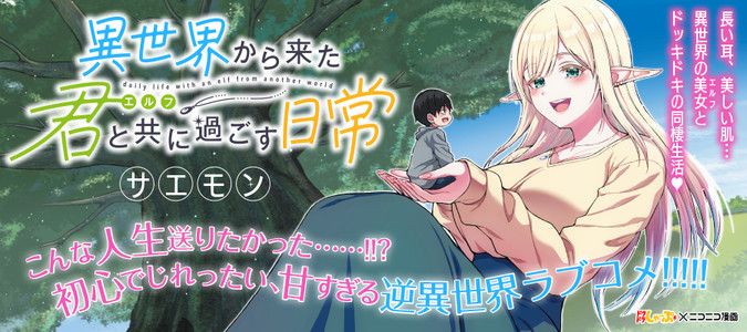 コミックス好評発売中!!!エルフと同棲生活、始めます!!?仕事もなく人生ドン底の青年・織部栄一(おりべえいいち)はある日、公園で謎の石を拾うと突如発光!?目を開けるとそこは巨大な樹の上でエルフの美女を抱きかかえていた!衰弱している彼女を助けようとする栄一、だが樹から落下し意識を失ってしまう。しばらくして病院で目を覚ますと、そこには公安を名乗る黒川とエルフのティアの姿が。そこで告げられたのは衝撃の事実…そして、ティアからの突然の告白!!果たして栄一の運命は…!!?
