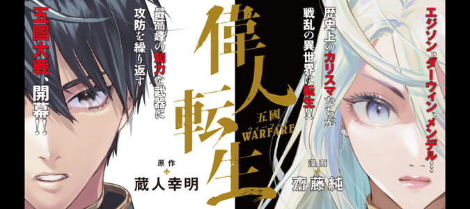 100年続く戦乱の世。 アスドルム王国の幼馴染のフウゴとロカ。 一度は離れ離れになった二人の運命が再び交じり合ったときかつてない新しい脅威が二人に襲いかかる――‼ エジソン、ダーウィン、メンデル…戦乱の異世界に転生した天才偉人たちが、最高峰の知力を尽くして勝負する! 五國大戦開幕――‼