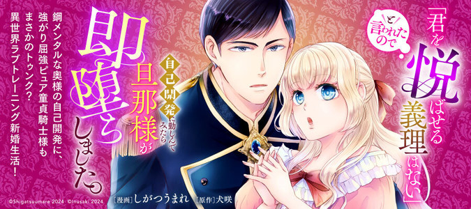 騎士のエラルドと政略結婚をした伯爵令嬢のベルティーナは、初夜で「君を悦ばせる義理はない。君を抱くのは義務だ」と言われてしまう。作業のようなエッチをされ、繋がるのも苦しく、すぐにカラダを離されてしまうが、実は自分の身体を思いやってのことだと理解する。せっかく縁あって夫婦になったのだから、エラルドとの距離を少しずつでも詰めたいと考えたべルティーナは、ふとあることに思い至る。「自己開発して、触れられるだけで感じる身体になれば万事解決なのでは?」そこからべルティーナの修業の日々が始まるのだが――。鋼メンタルなエロポテンシャルの高い奥様に、強がり屈強ピュア童貞がまさかのトゥンク? 夫婦円満のために感度アップの修業中! 異世界ラブトレーニング新婚生活☆スタート♪