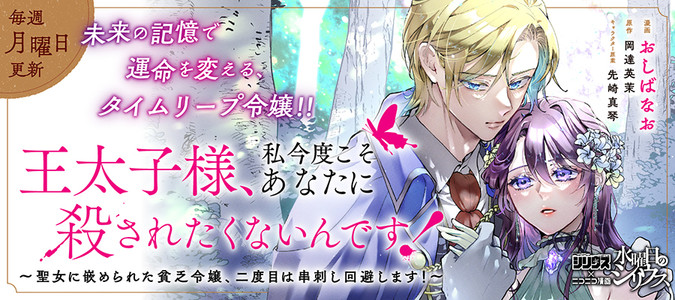 \単行本第8巻、絶賛発売中!!!/ 未来の記憶で運命変えるタイムリープ令嬢!! 貧乏令嬢のリーセルは、性悪聖女に嵌められたせいで恋人の王太子に殺された。 でも気がつくと幼い頃まで時間が戻っていて、人生をやり直すことに! 2周目のメリットを活かして王太子や聖女と無縁の生活を送りたいのに、 聖女の幼馴染みの男が人生に絡んできたりして様子がおかしい!? 毎週月曜日更新!