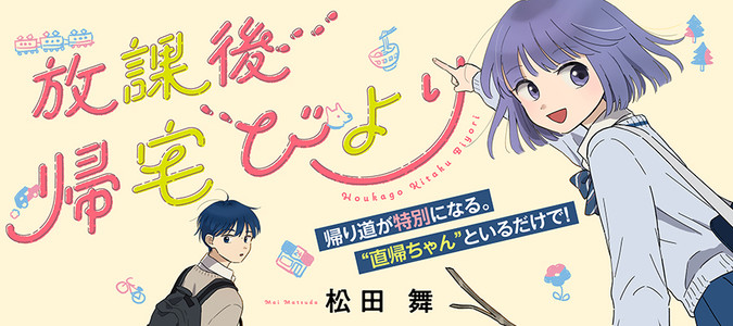 帰り道に転がっている“ロマン”を求めて 『ハイパー帰宅部』の活動を続ける“直帰ちゃん”と、 彼女に振り回されるハメになる新入生・瞬君の 帰宅部青春ラブコメディです♪ 夢を失い、落ち込んでいた瞬君は、 少しずつ毎日が色づいていくことを実感していきます。 ぜひ温かい目で見守ってください♪